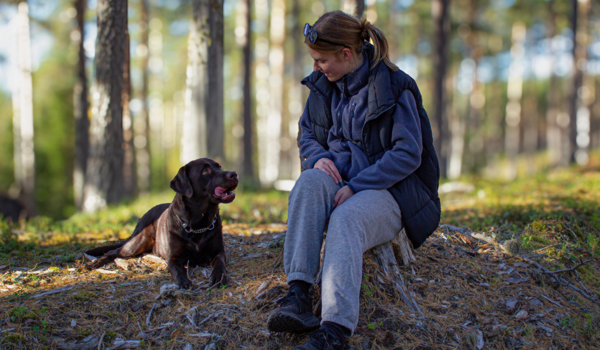Tillsammans har de byggt ett starkt band och spenderar mycket tid i skogen, där både motion och lugn står i fokus. Nosework har blivit en favoritaktivitet som de numera tävlar i. Hon uppskattar samarbetet som sporten kräver och hur hon genom träningen lärt sig läsa Dinos signaler och beteenden, något som också blivit värdefullt i vardagen.