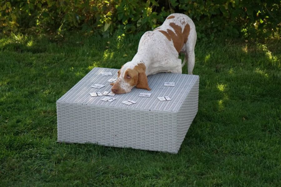 Terapihunden Rey kan spela memory. Bra hjärngymnastik för din hund.